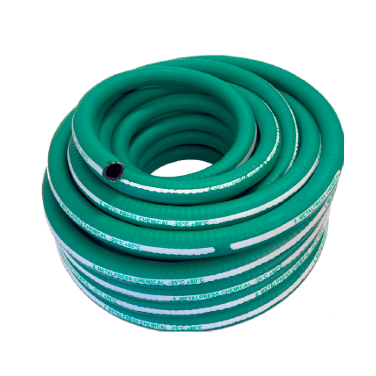 Fleksibel og robust suge- og trykslange fremstillet af termoplastisk TPV, forstærket med både tekstilvæv og indstøbt stålspiral. Ideel til krævende opgaver i den kemiske industri. Slangen er kemikalieresistent (se resistenstabel for TPV), temperaturbestandig fra -25 °C til +80 °C. Farven er grøn med hvid stribe for nem identifikation.