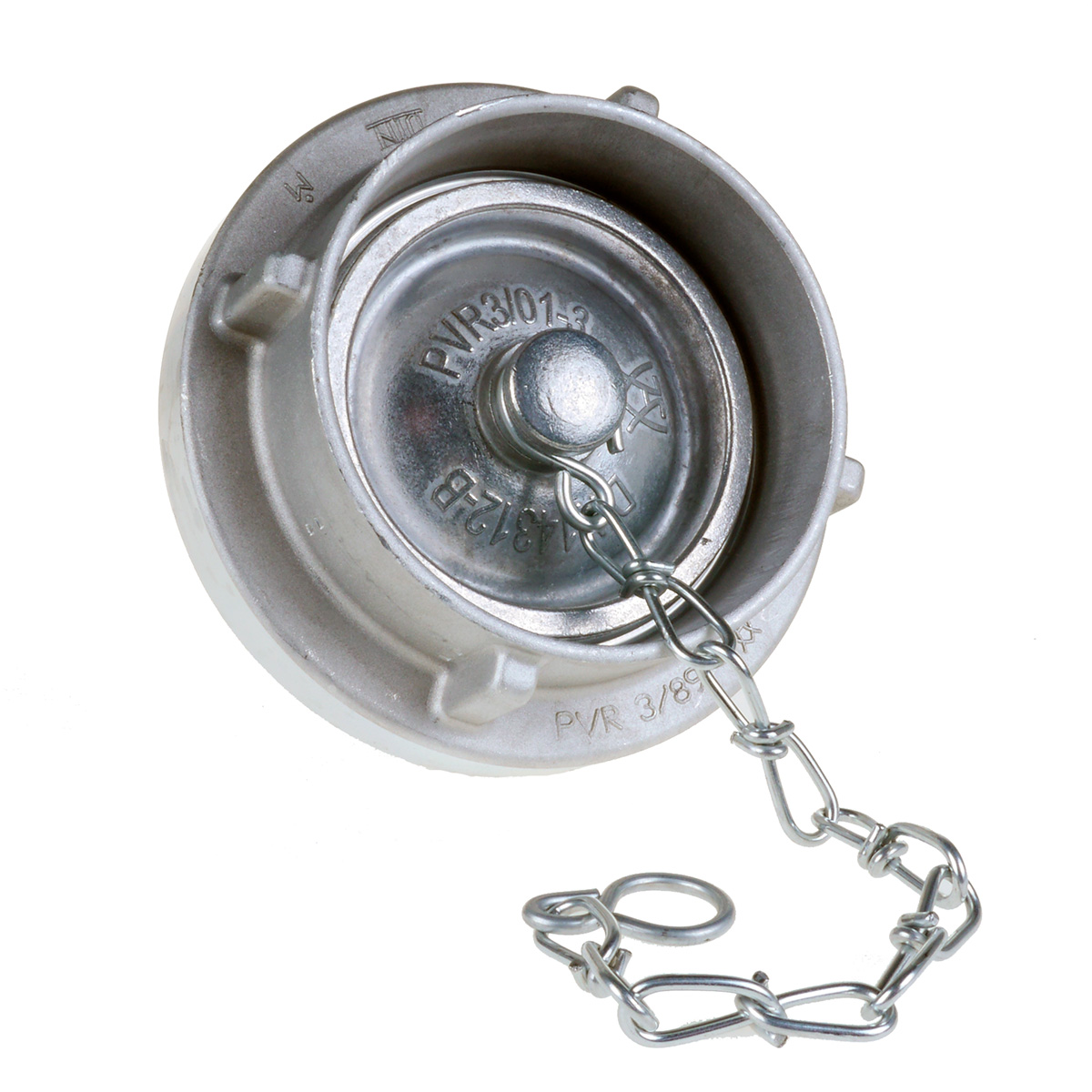 Storz blind-/slutdæksel med kæde. Smedet aluminium har højere brud- og slidstyrke end støbt aluminium.