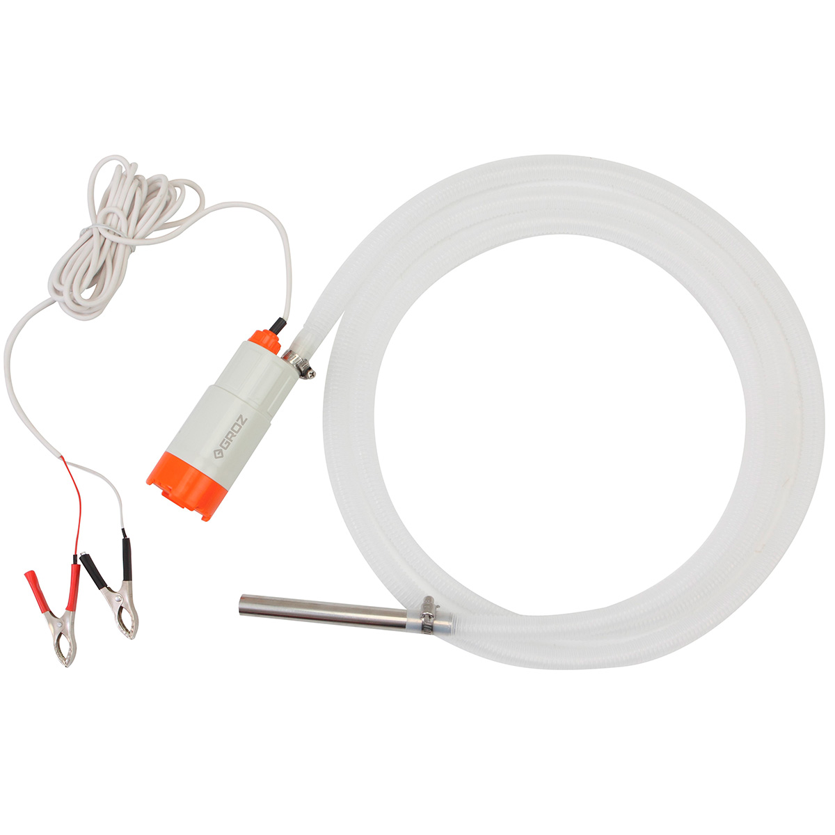 Inkluderer 4 m batterikabel med 2 krokodilleklemmer samt 3 m korrugeret udløbsslange med fast, lige udløb. Pumpen leverer op til 10 L/min. ved 1 meters højde. Maks. løftehøjde: 11 meter. Pumpediameter: 54 mm. Pumpen tåler ikke tørkørsel. Medieberørte komponenter: PVC, PP, NBR, zink, rustfrit stål, PE, PU.