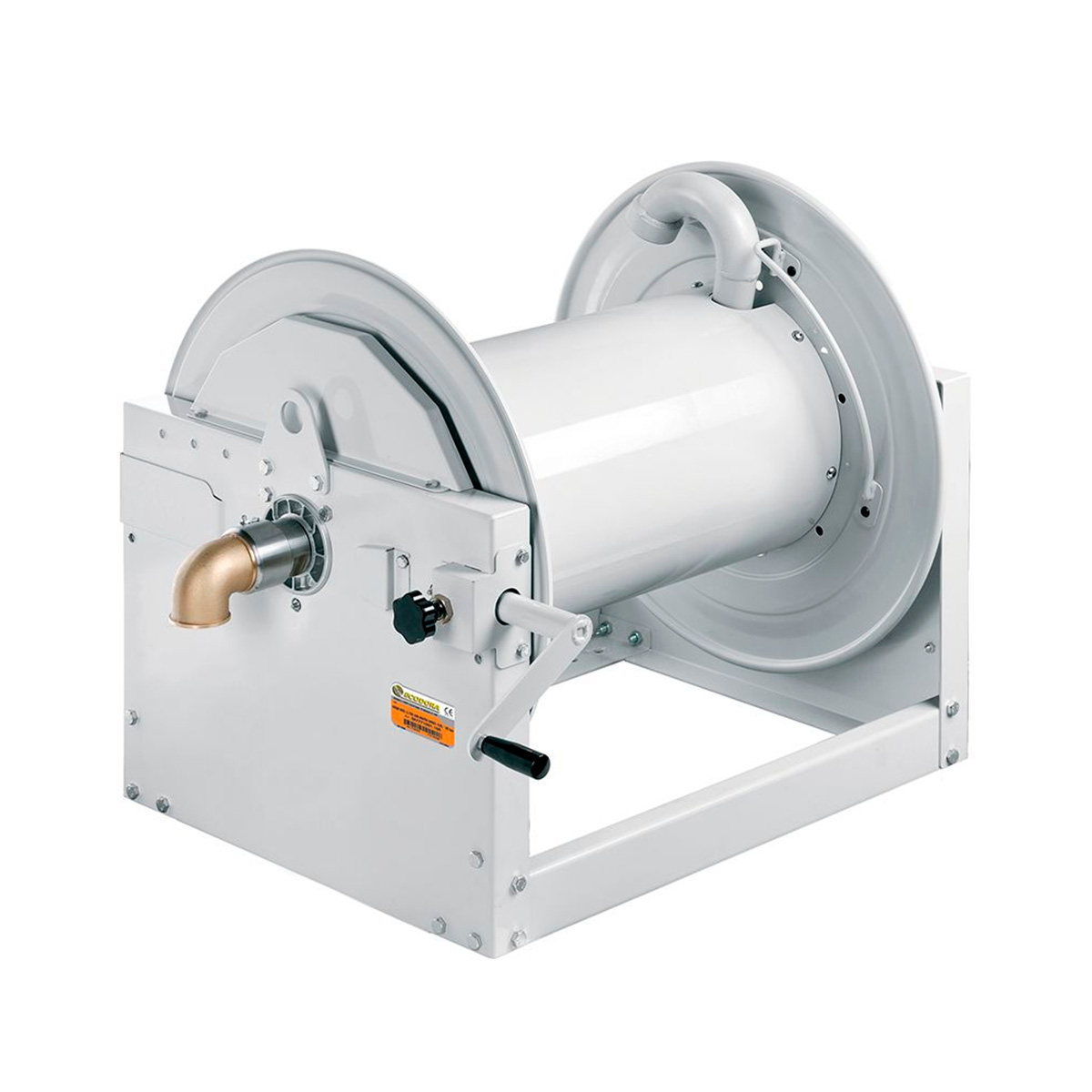 Oprulleren rummer maks. 290 m 3/8” ”, 185 m ½", 120 m ¾”, 60 m 1", 35 m 1 ¼”, 30 m 1 ½” eller 20 m 2" slange. Fremstillet i grålakeret stål. Drejeled af aluminium, pakning af Viton og centeraksel af galvaniseret stål. Beregnet til f.eks. luft, vand, kølervæske og dieselolie m.m. Maks. arbejdstryk 20 bar.