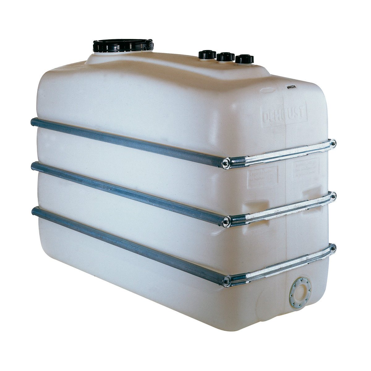 Dehoust vandtanken er en High-Density polyethylen enkeltvægget 3000 L tank til vand og lign. Materiale er godkendt til drikkevand. Der er monteret 3 galvaniserede stålbandager på tanken.