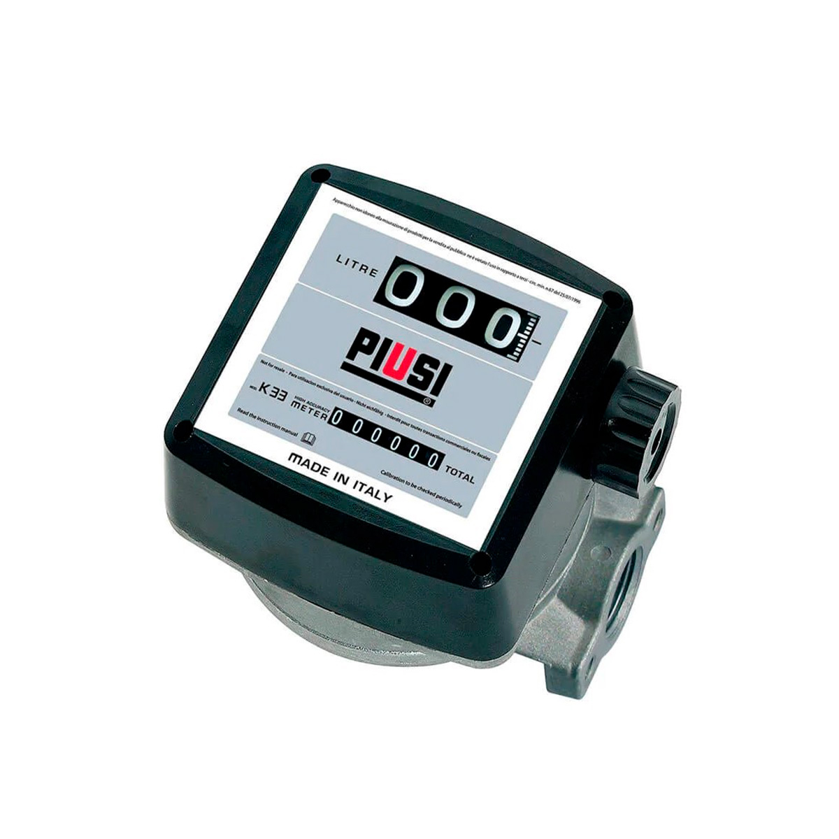 Fabrikat: Piusi. 3-cifret nulstilbar tæller. 6-cifret, ikke nulstilbar totaltæller. Kalibrerbar.