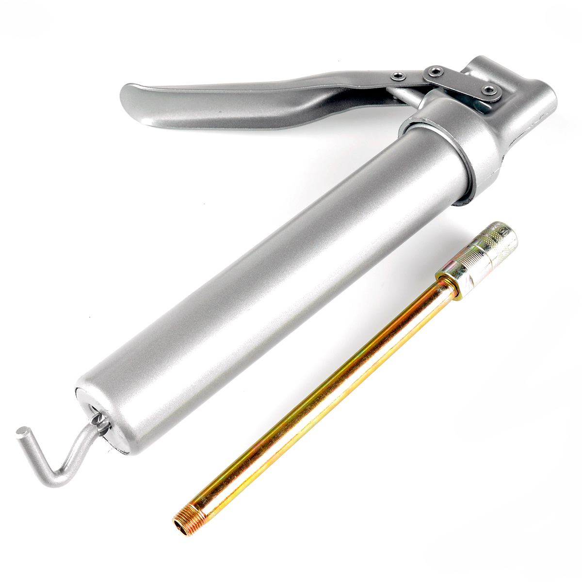 Fedtpresseren er en lille og handy 1-hånds model fra Pressol med fast lige udløb og med 1/8"RG, inkl. 4-bakket mundstykke og 9 mm fyldenippel. Den fyldes med fedtfylder eller løst fedt, og anvendes til fedtsmøring med højt tryk på træge steder. Rumindhold: 125 cm³.