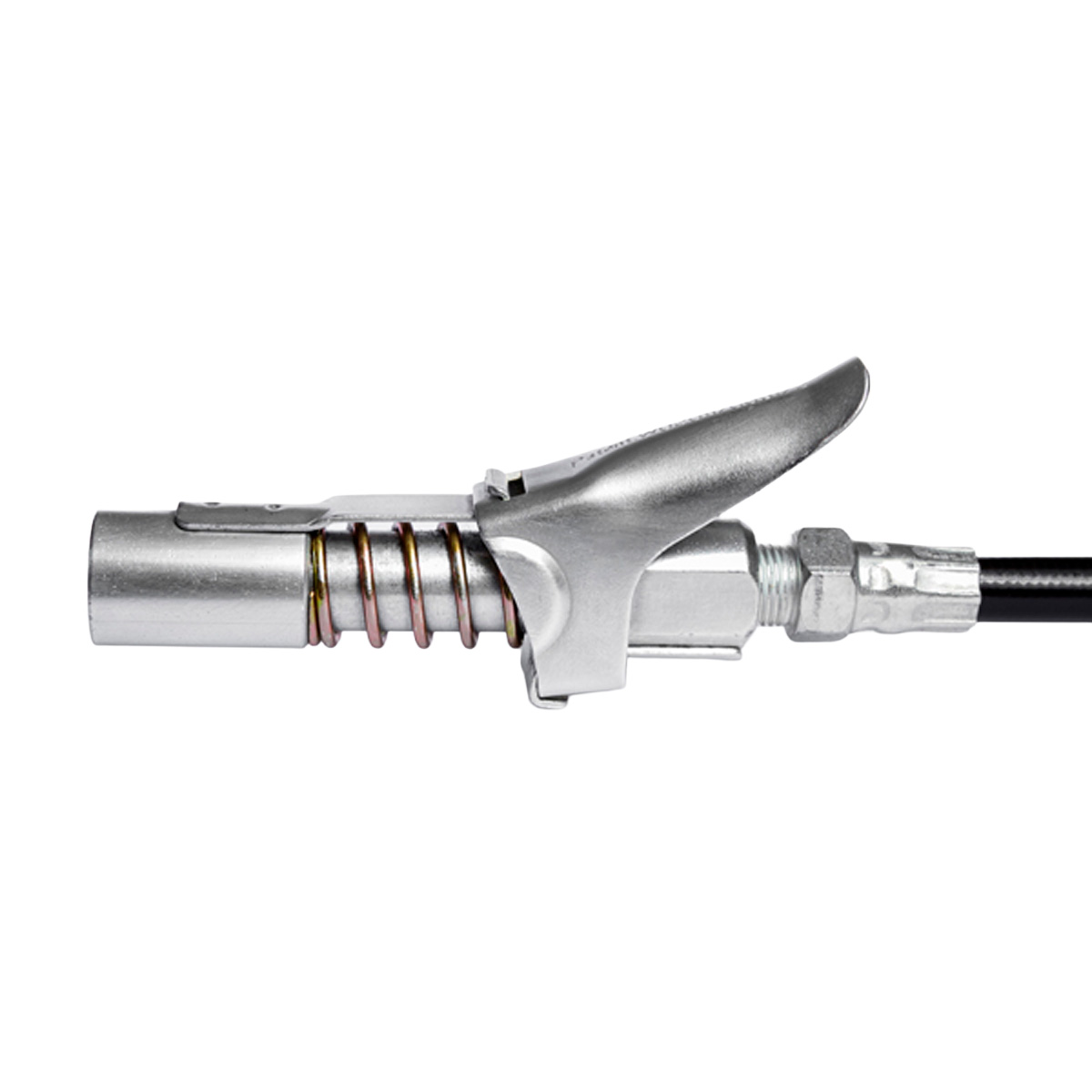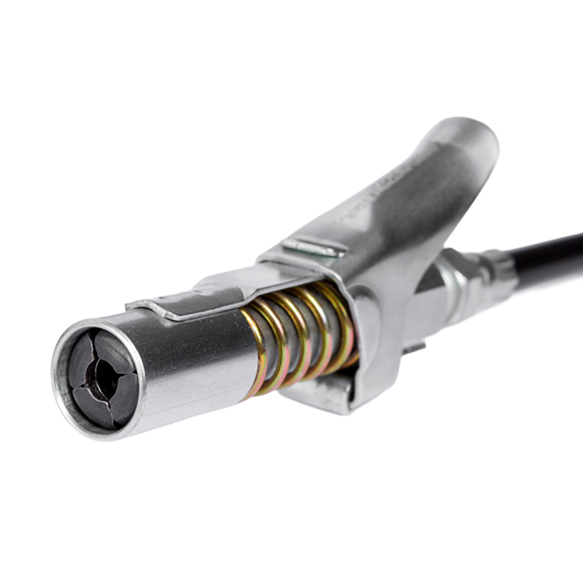 Til fastlåsning på almindelige H1, H2 og H3-smørenipler. 1/8" IRG-tilslutning. Den viste slange medfølger ikke.