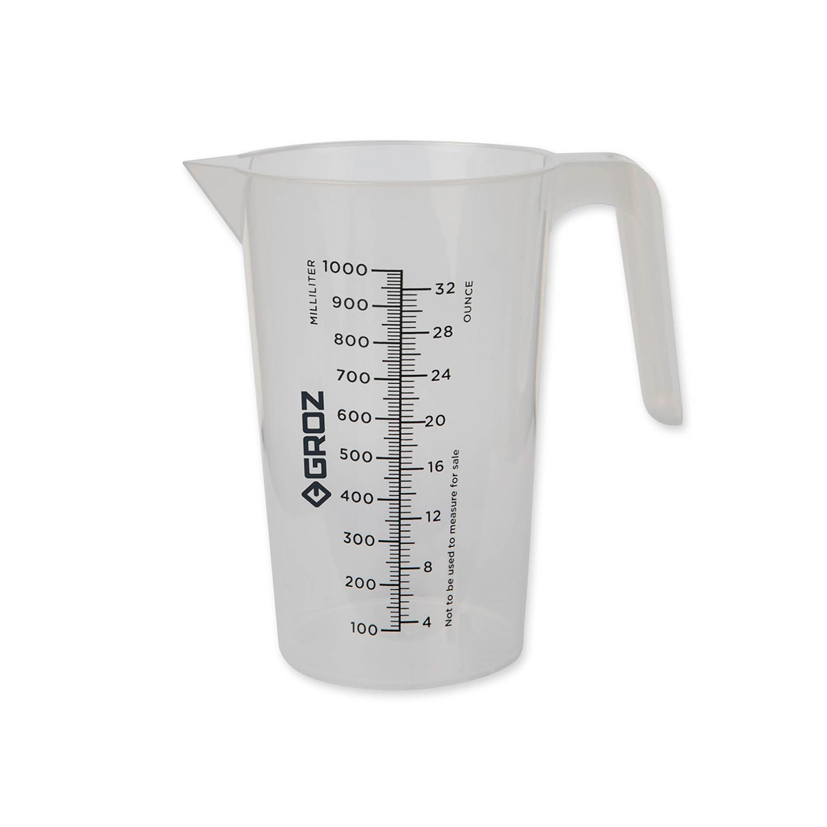 Groz mÄlekande er designet til opmÄling og udhÊldning af vÊsker i industrielle og automobiltekniske anvendelser. Kanden er fremstillet af kraftig, klar og gennemsigtig polypropylen, som er sÊrdeles slidstÊrk og modstandsdygtig over for kemikalier, syrer og baser.