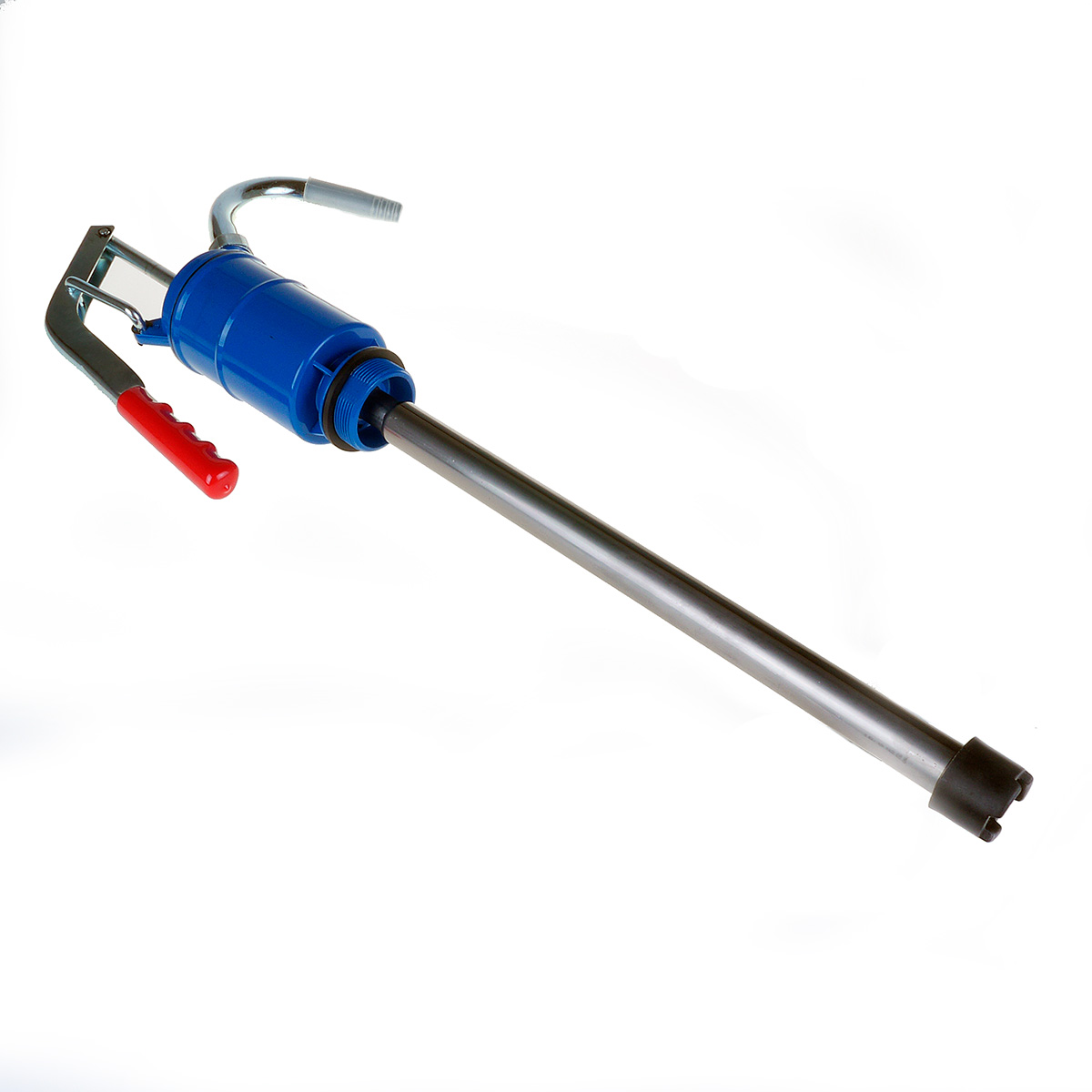 Universal blå håndpumpe med teleskoprør, der passer til 1/4 og 1/1 tromler. Håndpumpen er udført i støbt zink konstruktion med indbygget 2” fadforskruning. Giver ca. 0,7 ltr./pumpeslag. Suger ca. 20 mm over bunden af tromlen ved 1/1 tromler. Vægt ca. 2,5 kg