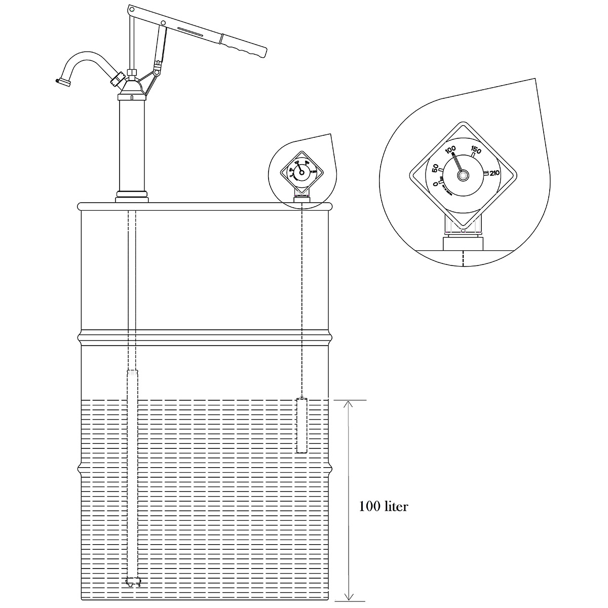 Niveaumåler til 205-210 L ståltromler