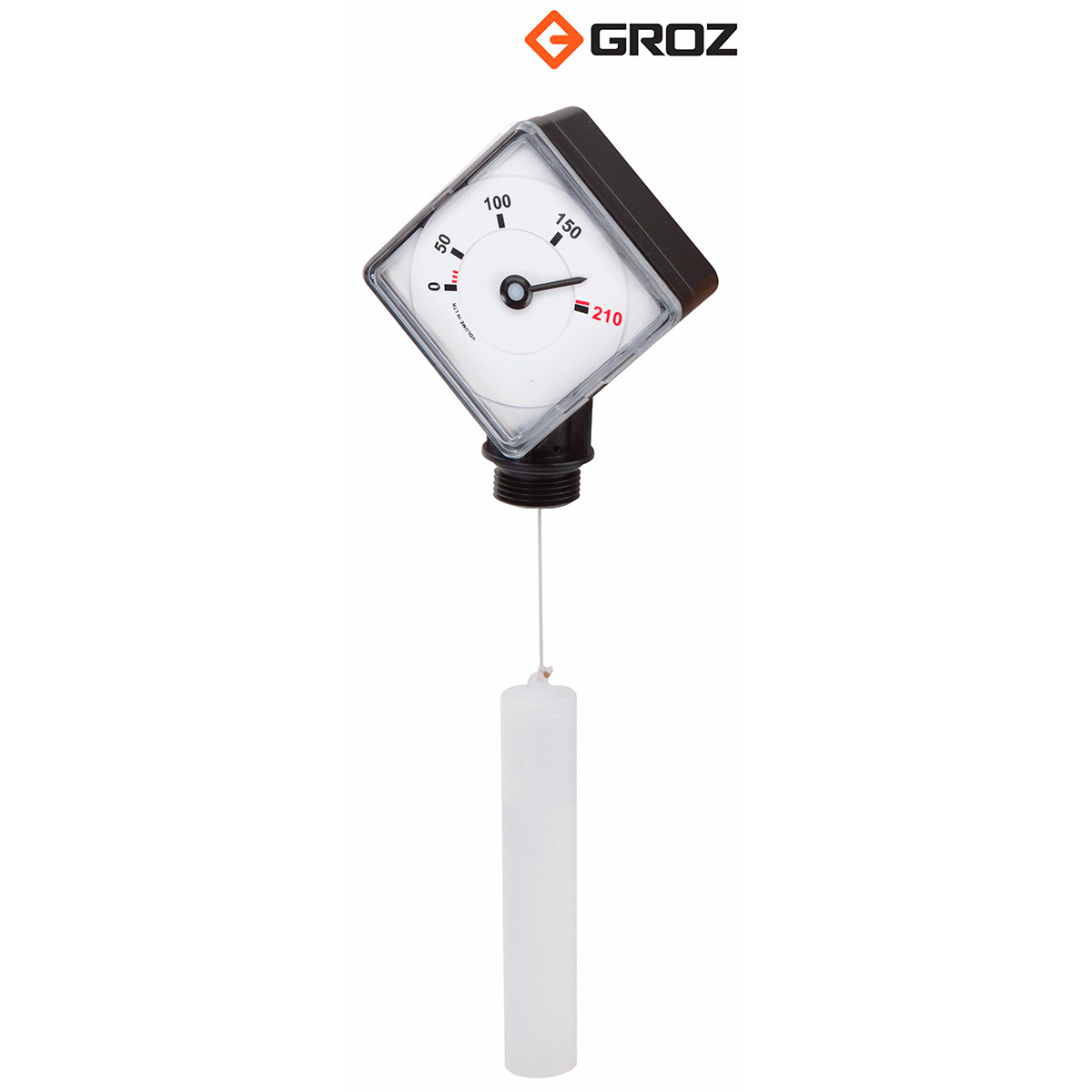 Firkantet analog skala fra 0-210 L. Polyethylen konstruktion med planetgear.