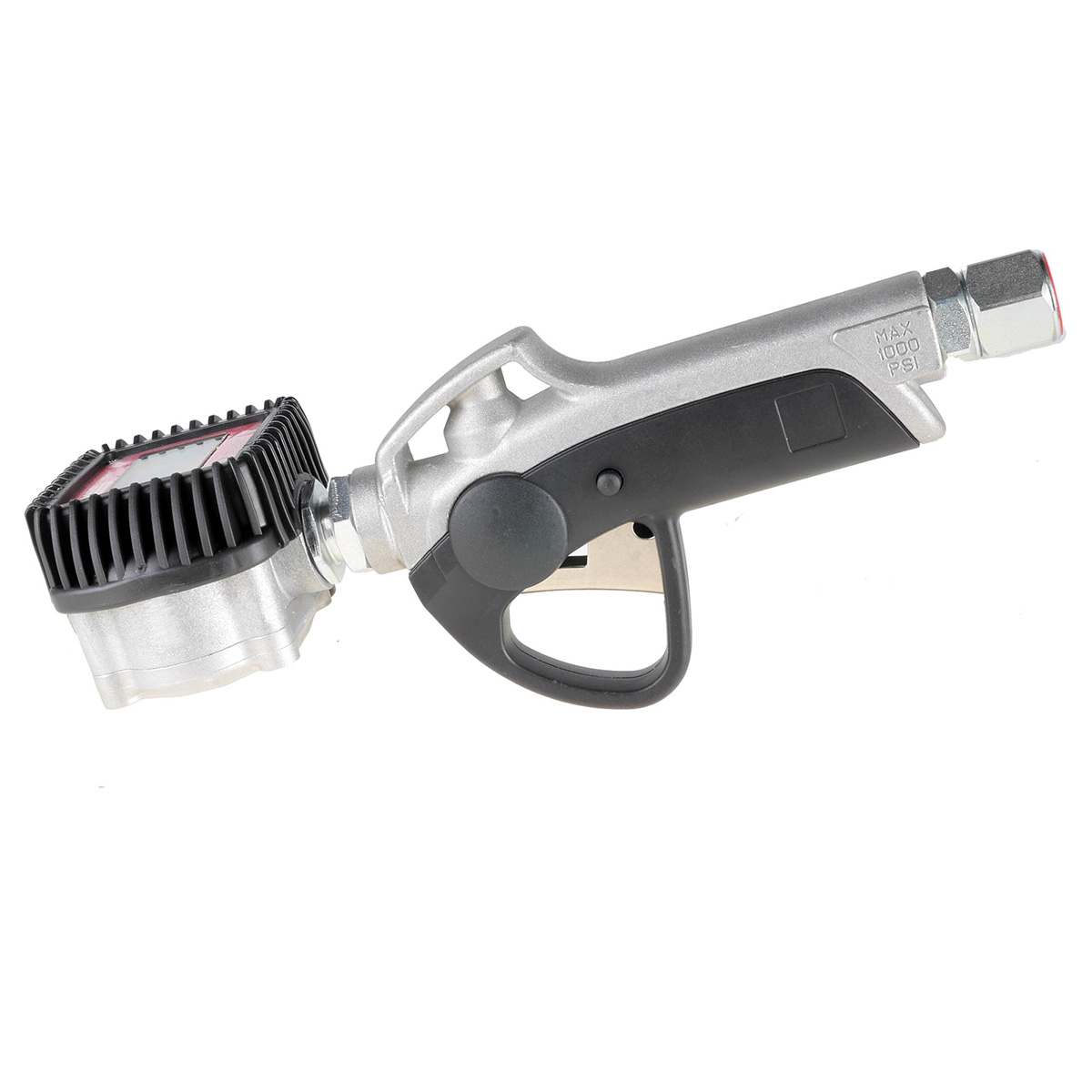 Dispenseren leveres med en PIUSI K400 digital oliepistol med bøjet udløb og manuel antidrypventil og beskyttelseskappe. Der medfølger påfyldningstragt og pistolholder til digitalpistolen. Nøjagtighed efter kalibrering: +/- 0,5 %. Display: 5-cifret LCD.