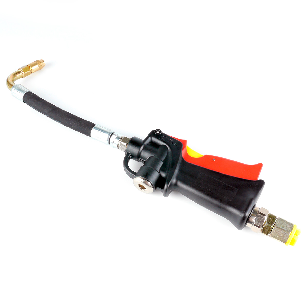 Oliepistol med fleksibelt bøjet udløb og manuel antidrypventil, 1/2" IRG tilslutning. Leveres med drejeled og NBR pakning. Kan bruges til olie og kølervæske.