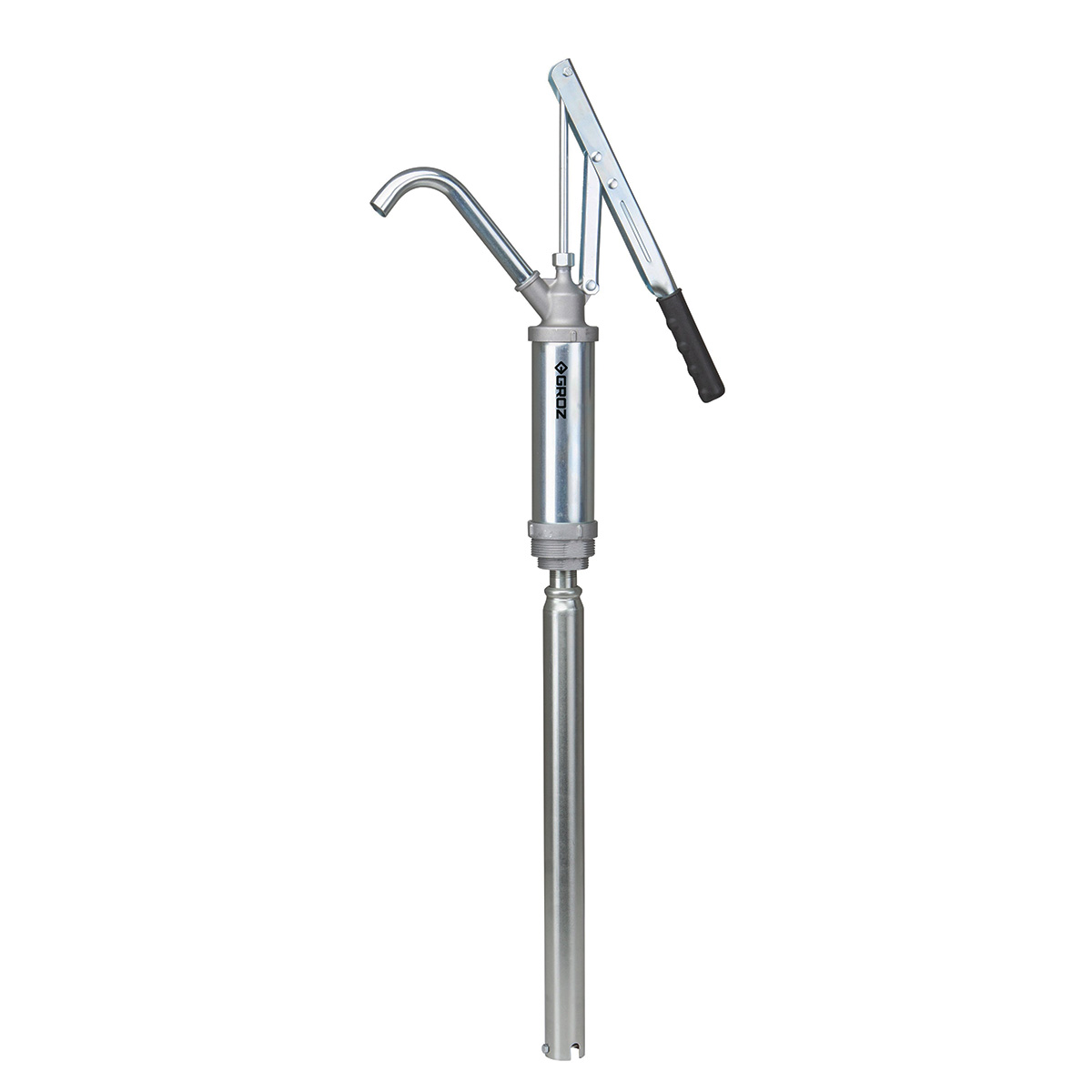 Den er forsynet med teleskopsugerør (min. 460, maks. 875 mm) af stål for nem tilpasning til tromlestørrelse. Bøjet metaludløb. Indbygget 1 ½” og 2” fadforskruning. Pumpen yder op til 0,3 liter pr. pumpeslag.