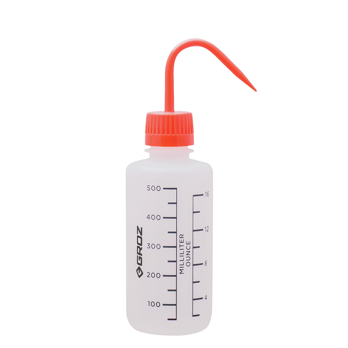 Effektiv og alsidig smøreflaske på 500 ml, fremstillet af transparent LD-polyethylen. Beholderen er forsynet med tydelig måleskala i både milliliter og fluid ounces, hvilket gør det nemt at dosere præcist.