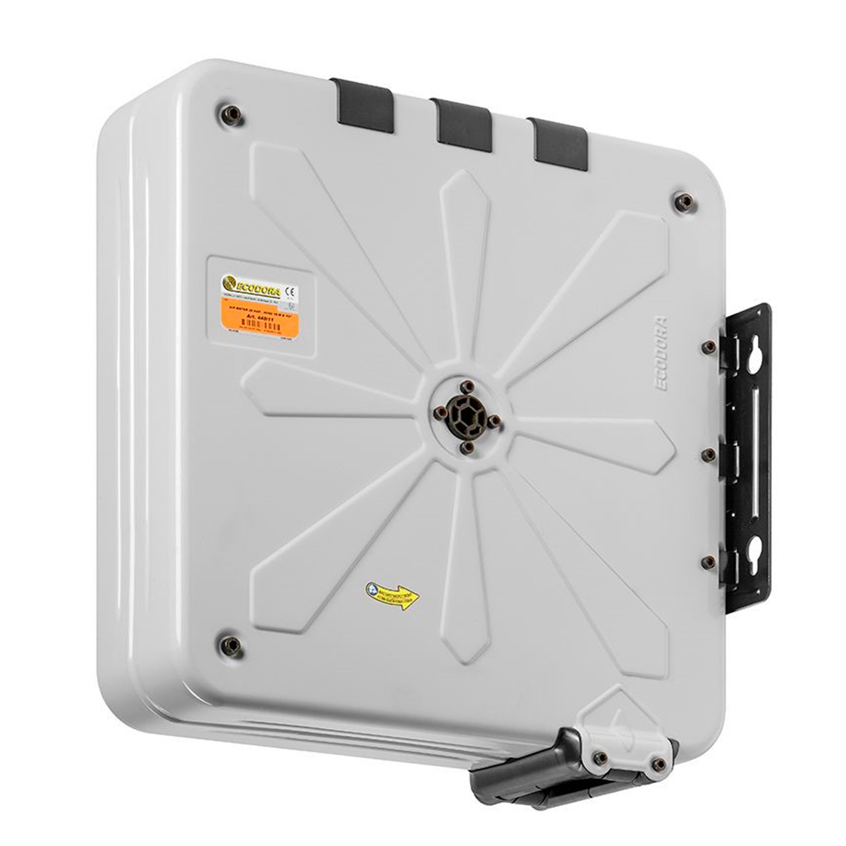 Fabrikat: Ecodora. Offwhite lakeret stålkabinet med ABS-tromle monteret med 15 m 1/2" olieslange med 1/2"URG-afgang. 0,6 m tilgangsslange med 1/2" IRG-omløber medfølger (ej vist på billedet). Maks. 150 bar. Polyuretan pakning. Kabinet mål: 485 x 485 mm.