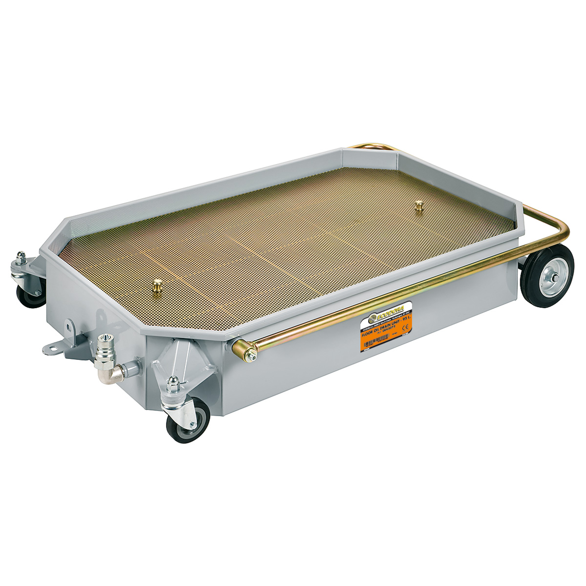 Ecodora spildolieapparat gulvmodel til underkøring med nedfældbart håndtag, hydraulikkobling (han) for tømning med tømmeudstyr samt anti-spild rist. Må ikke bruges til brandfarlige eller aggressive medier.