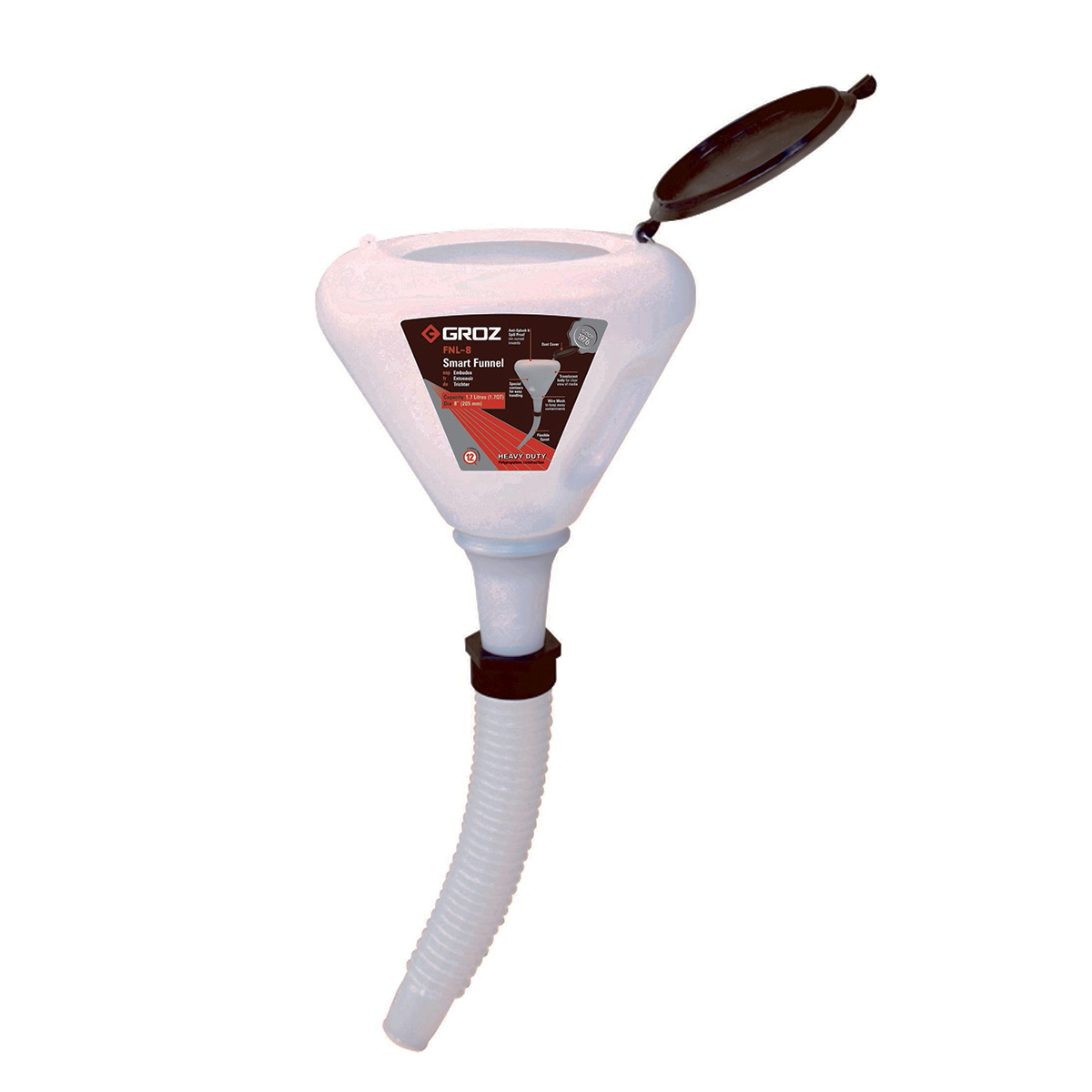 Mærke GROZ Anvendelsesområder Friskolie, Spildolie, Diesel, Benzin, Vand, Kemikalier, AdBlue