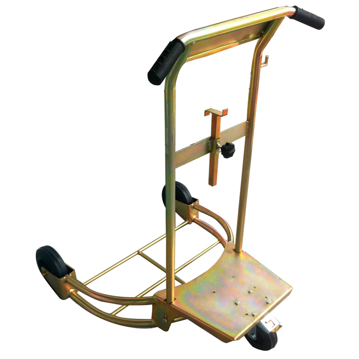 En robust 3-hjulet tromlevogn fra KENT til 1/1 fad. Tromlevognen er fremstillet i gulkromatiseret stål og er en kraftig 3-hjulet tromlevogn med plads til montering af slangerulle.