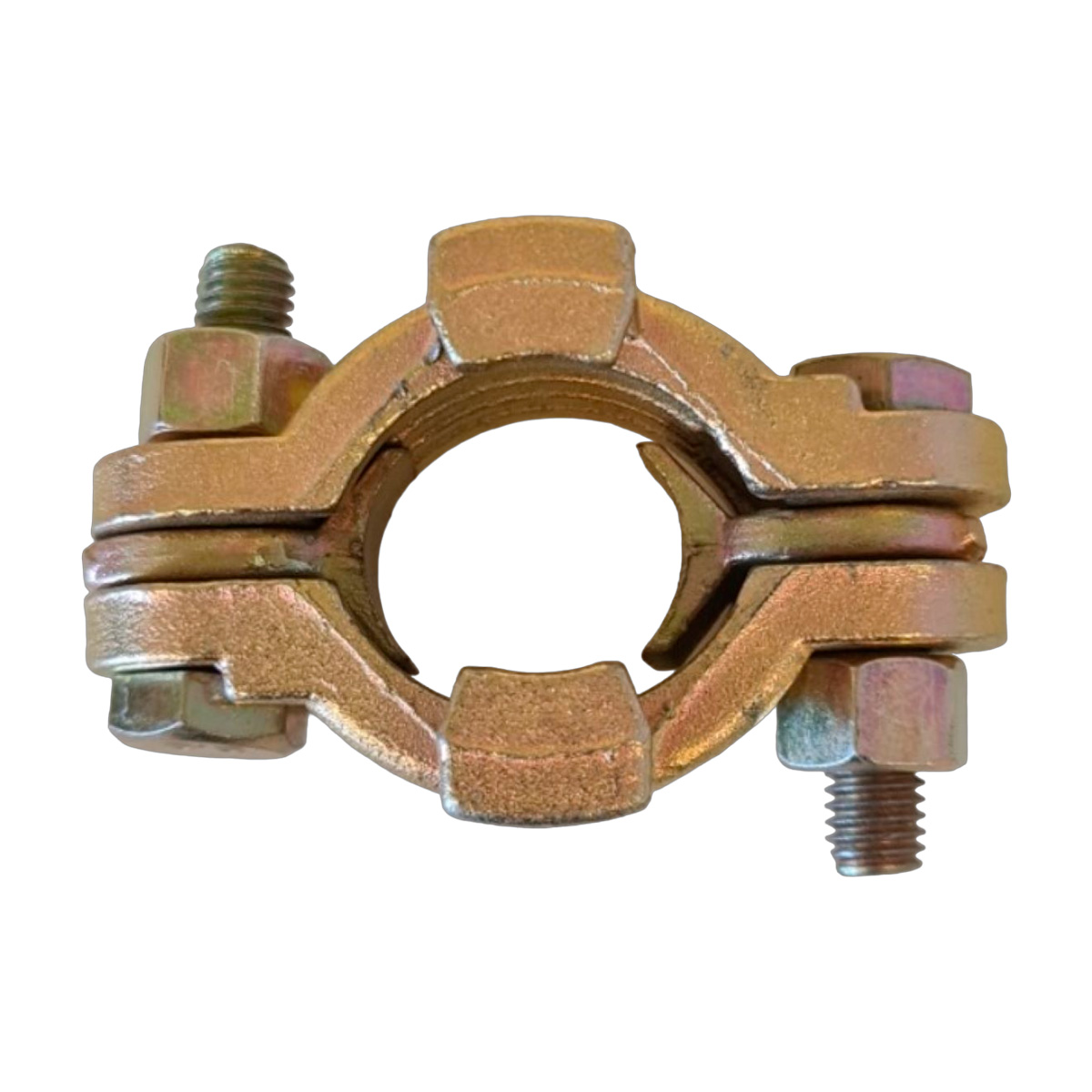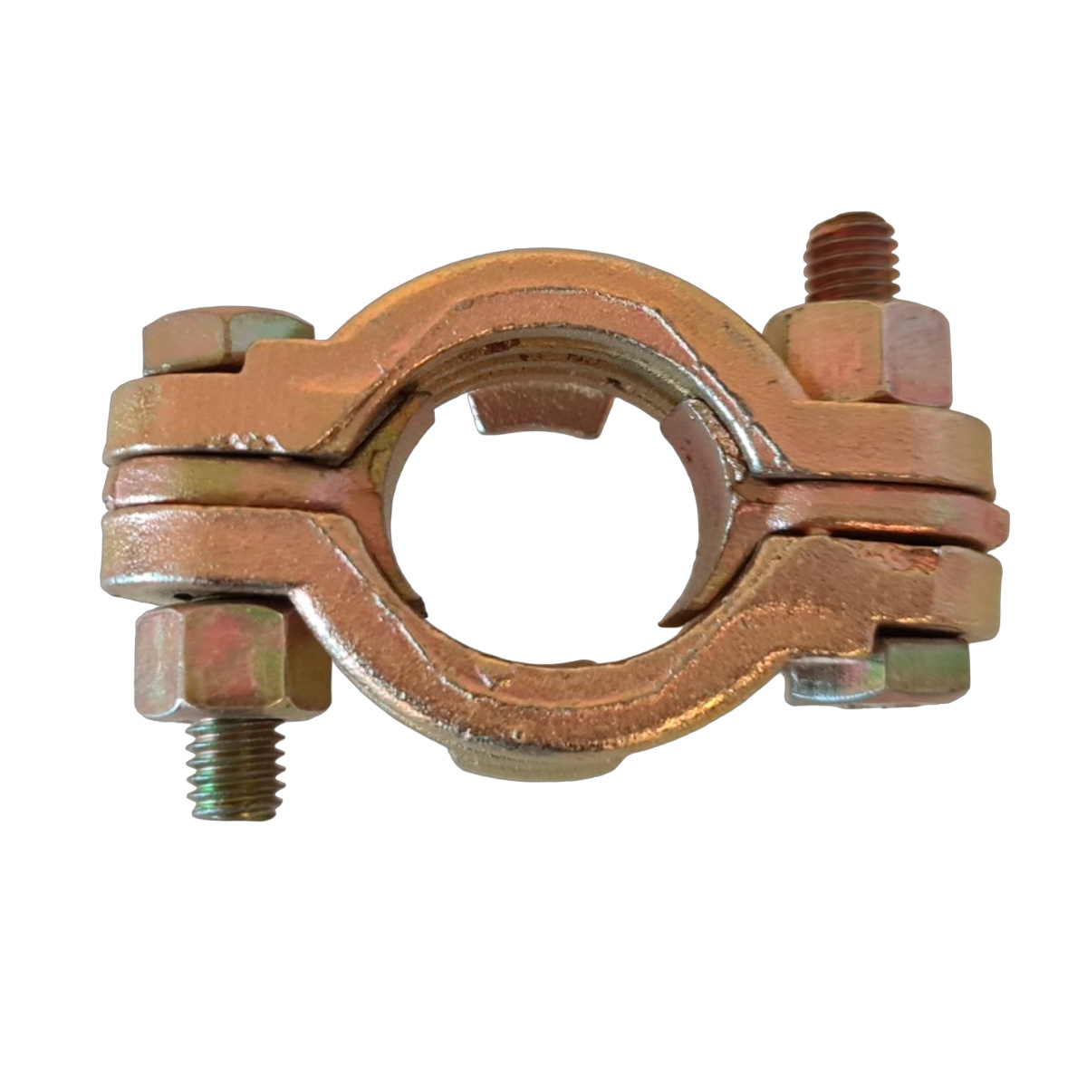 2-delt slangeklemme med bolte og løse tunger. Fremstillet i forzinket støbejern og fås i en række forskellige båndbredder. De er robuste, nemme at montere og sikre at anvende sammen med forskellige fittings.