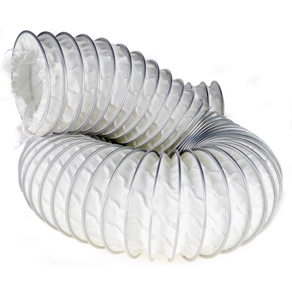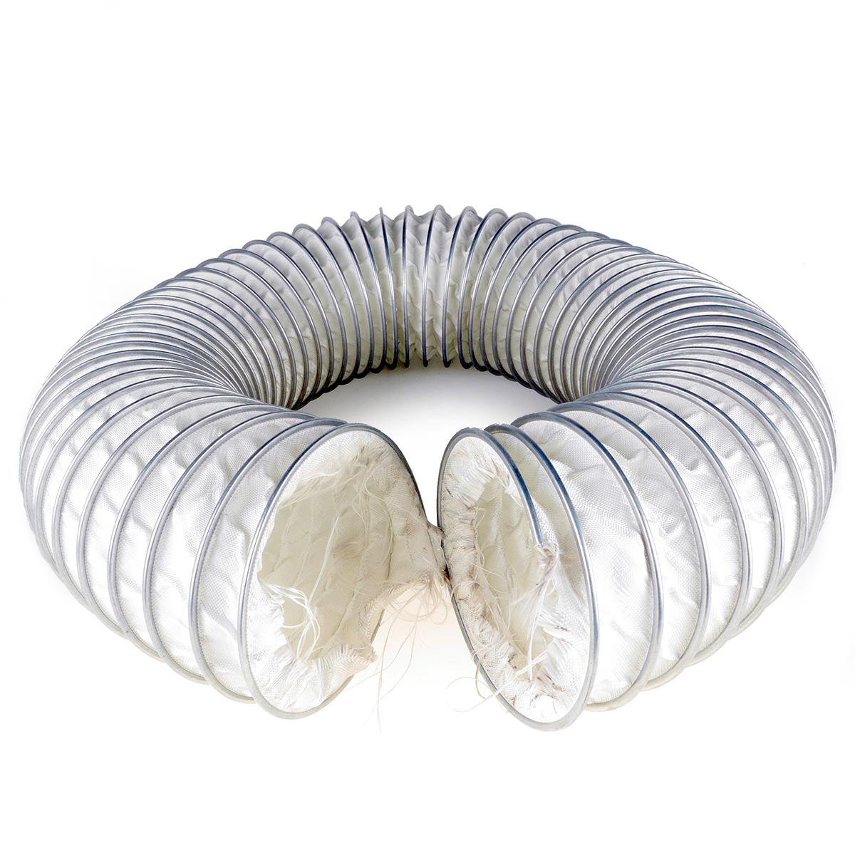 Glatex HT, højtemperatur slange, yderst fleksibel og særdeles komprimerbar pga. den udvendigliggende stålprofil. Anvendes især til udblæsning af varmt luft. Tåler temperaturer fra -170 til +450 °C. Udsugningsslangen er opbygget med en udvendigliggende stålprofil som er clipset sammen med glasklædet.