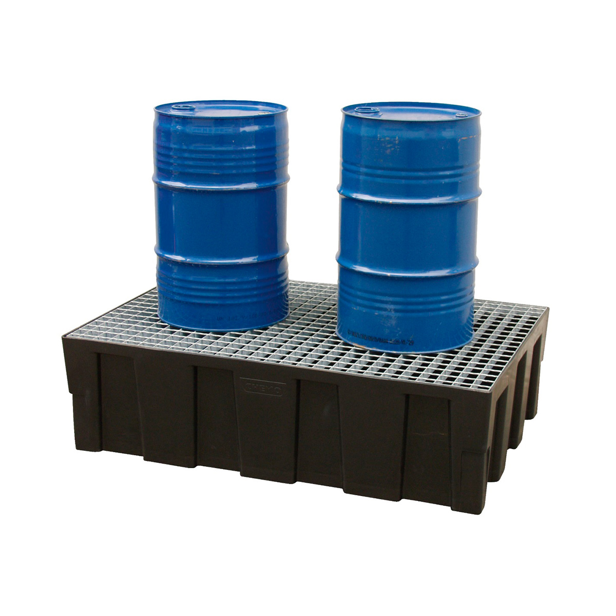Cemo opsamlingskarret er fremstillet af sort polyethylen (HD) og leveres med en galvaniseret gitterrist. Det er designet til sikker opbevaring af op til to 1/1 tromler på 220 liter. Karret er let at rengøre og tåler krævende miljøer.