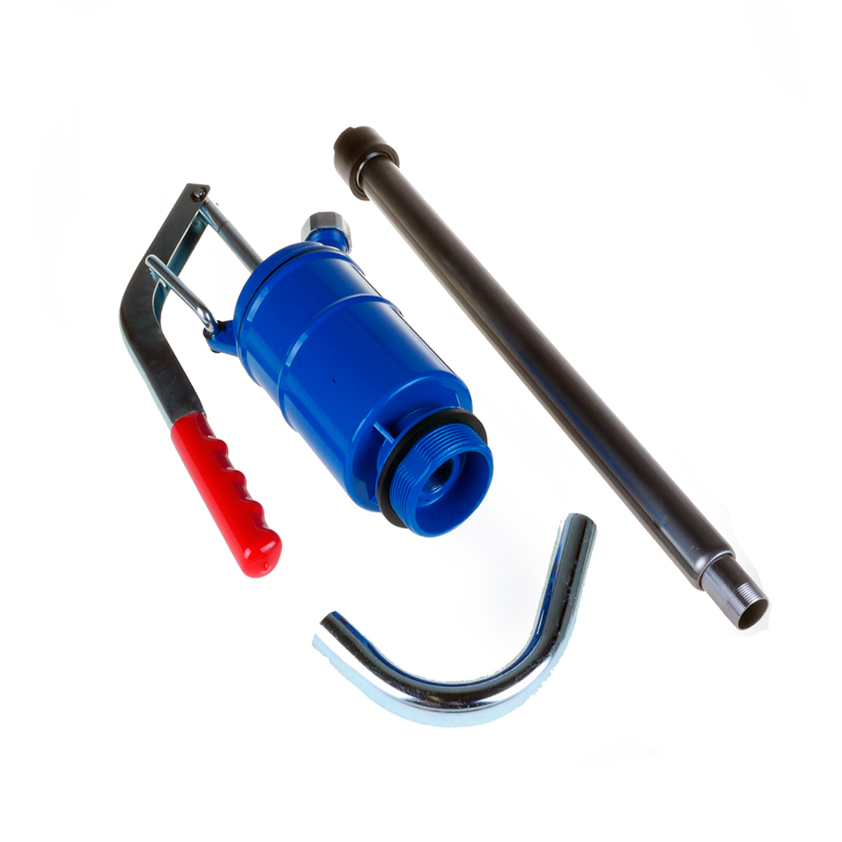 Universal blå håndpumpe med teleskoprør, der passer til 1/4 og 1/1 tromler. Håndpumpen er udført i støbt zink konstruktion med indbygget 2” fadforskruning. Giver ca. 0,7 ltr./pumpeslag. Suger ca. 20 mm over bunden af tromlen ved 1/1 tromler. Vægt ca. 2,5 kg