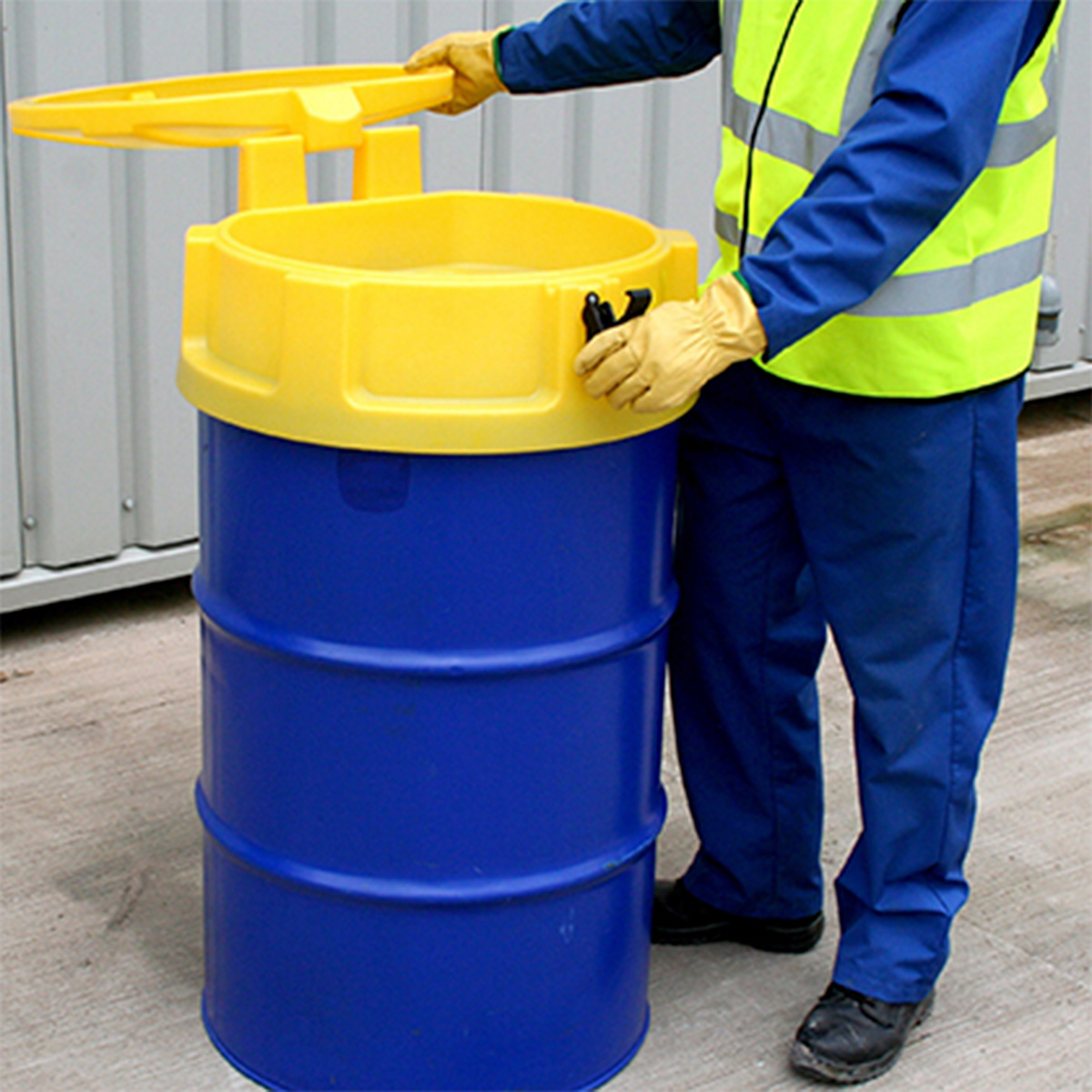 Tromletragt med låg til opsamling af spildolie - sikker og praktisk løsning