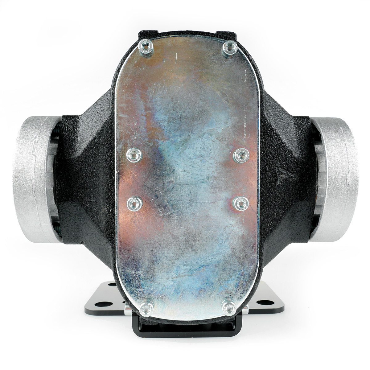 Trækker 42A ved 12V drift og 21A ved 24V. Max. 85 L/min. i frit flow. 1" IRG ind/udgang + de viste DN flanger.