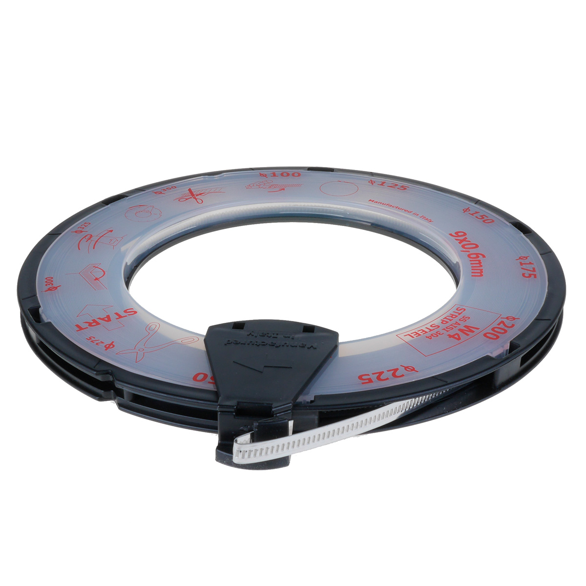 Med en rulle StripSteel kan du lave præcis den spændebåndsdiameter du står og mangler. Har du en rulle StripSteel i værktøjskassen og en æske spændebåndslåse, har du altid det rette spændebånd. Båndmateriale: 9 x 0,6 mm.